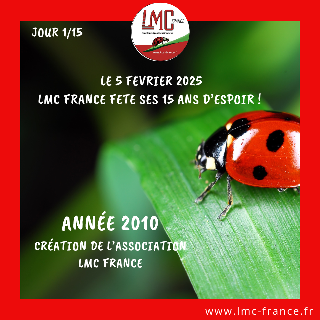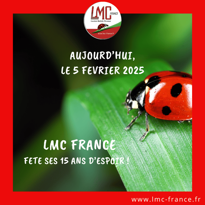 Aujourd'hui, est un jour très spécial, nous fêtons les 10 ans de l'association LMC France qui a été créée le 5 février 2010 par Mina Daban dans le but de combler le vide auquel sont confrontés les patients face à la Leucémie Myéloïde Chronique (LMC).