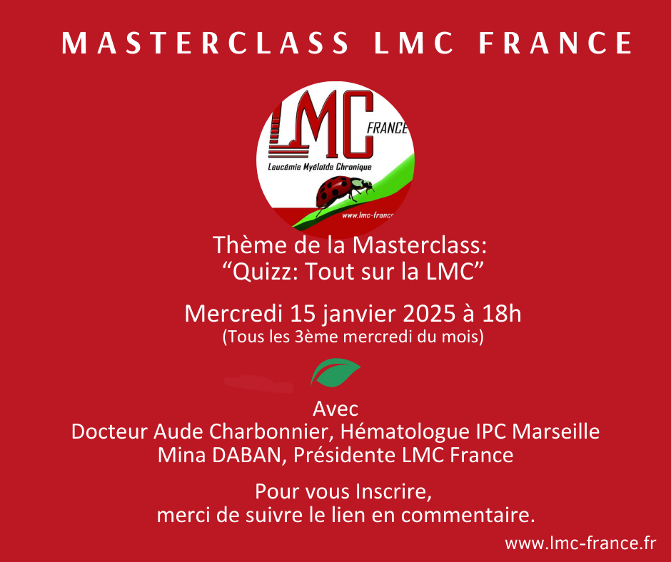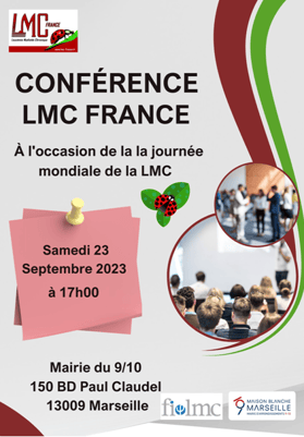 Samedi 23 septembre 2023 - A l’ occasion de la Journée mondiale de la LMC (Leucémie Myéloïde Chronique) Conférence sur la #leucémie myéloïde chronique par LMC France : « Patients, experts :
