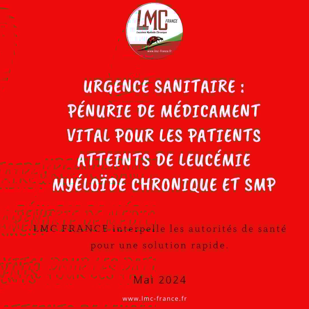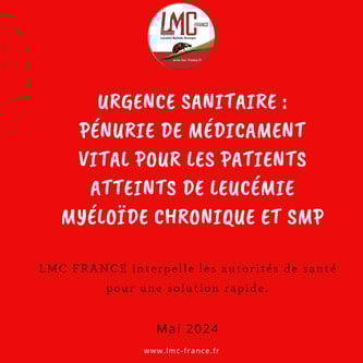nous pouvons éviter cette crise et garantir un traitement continu et efficace pour tous les patients. LMC FRANCE interpelle les autorités de santé française afin de trouver une solution au plus