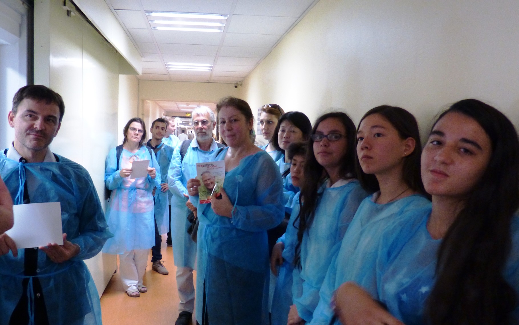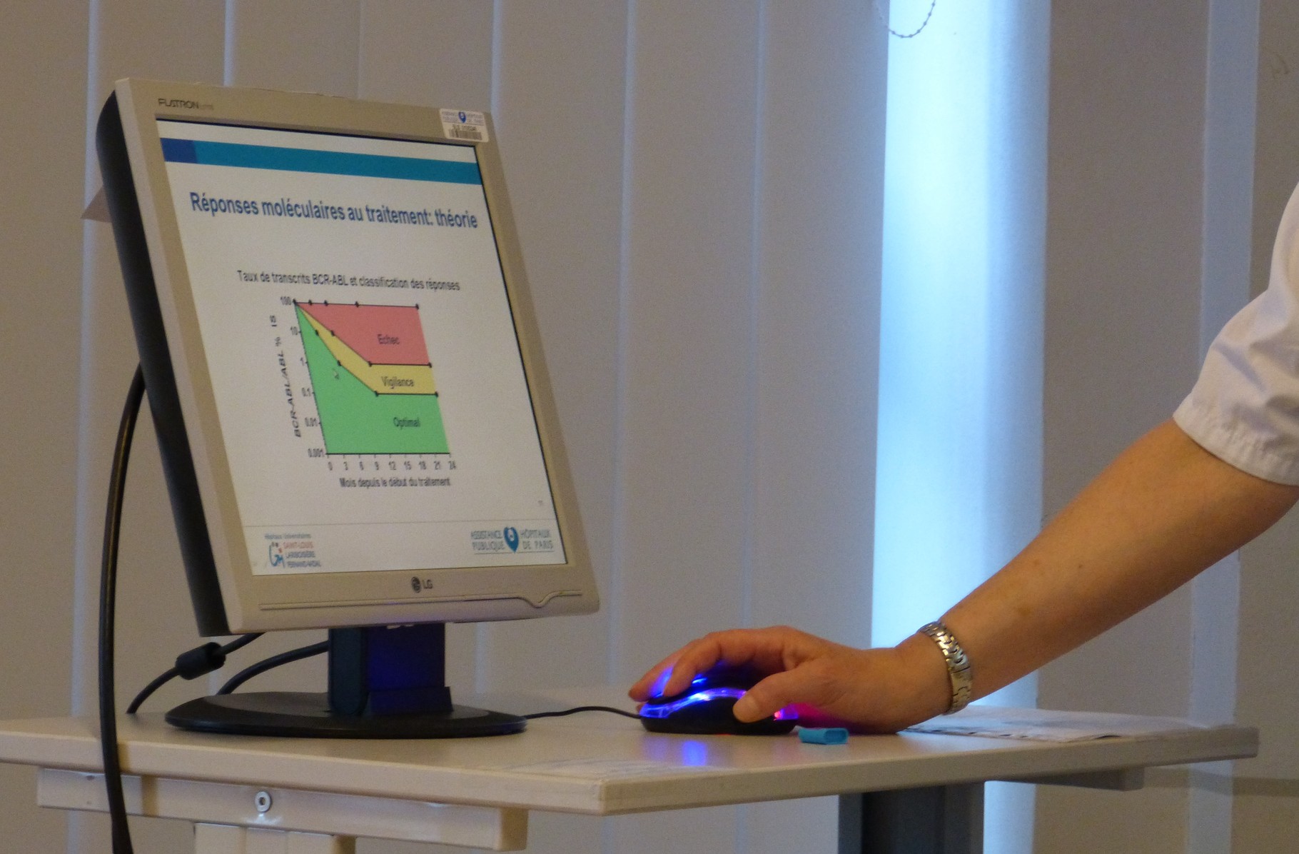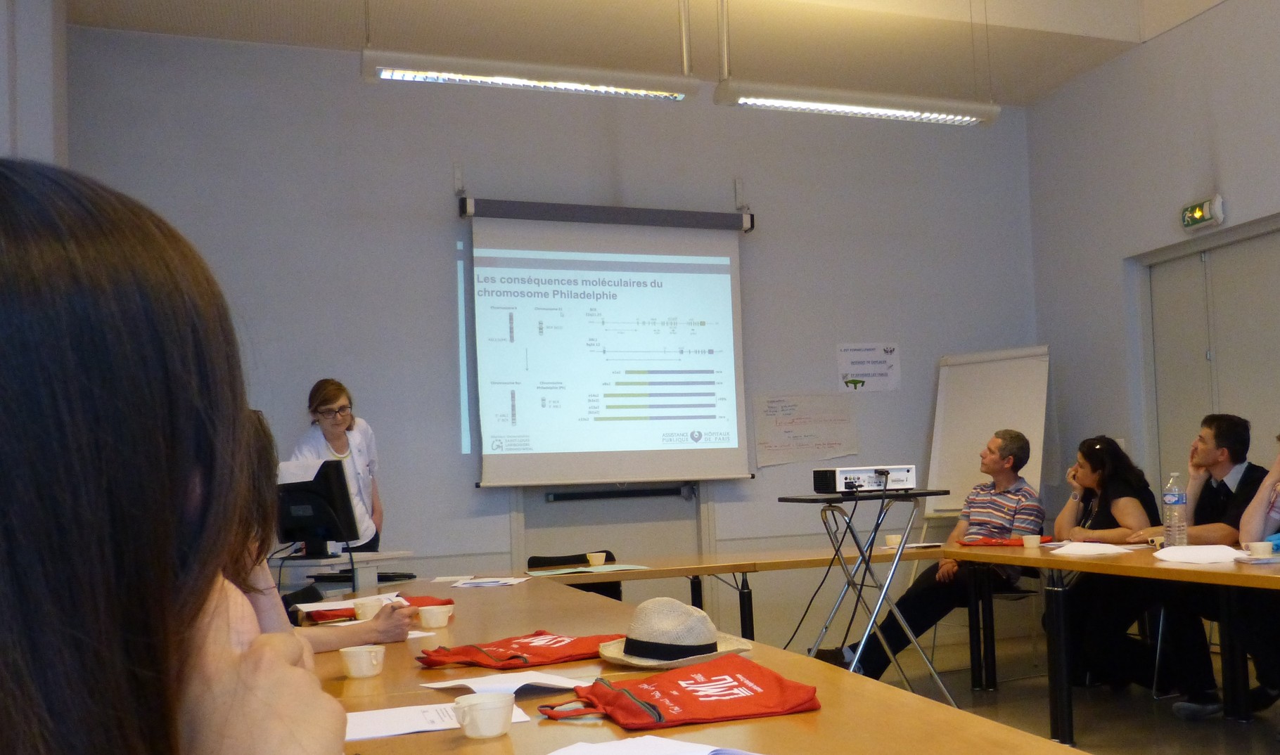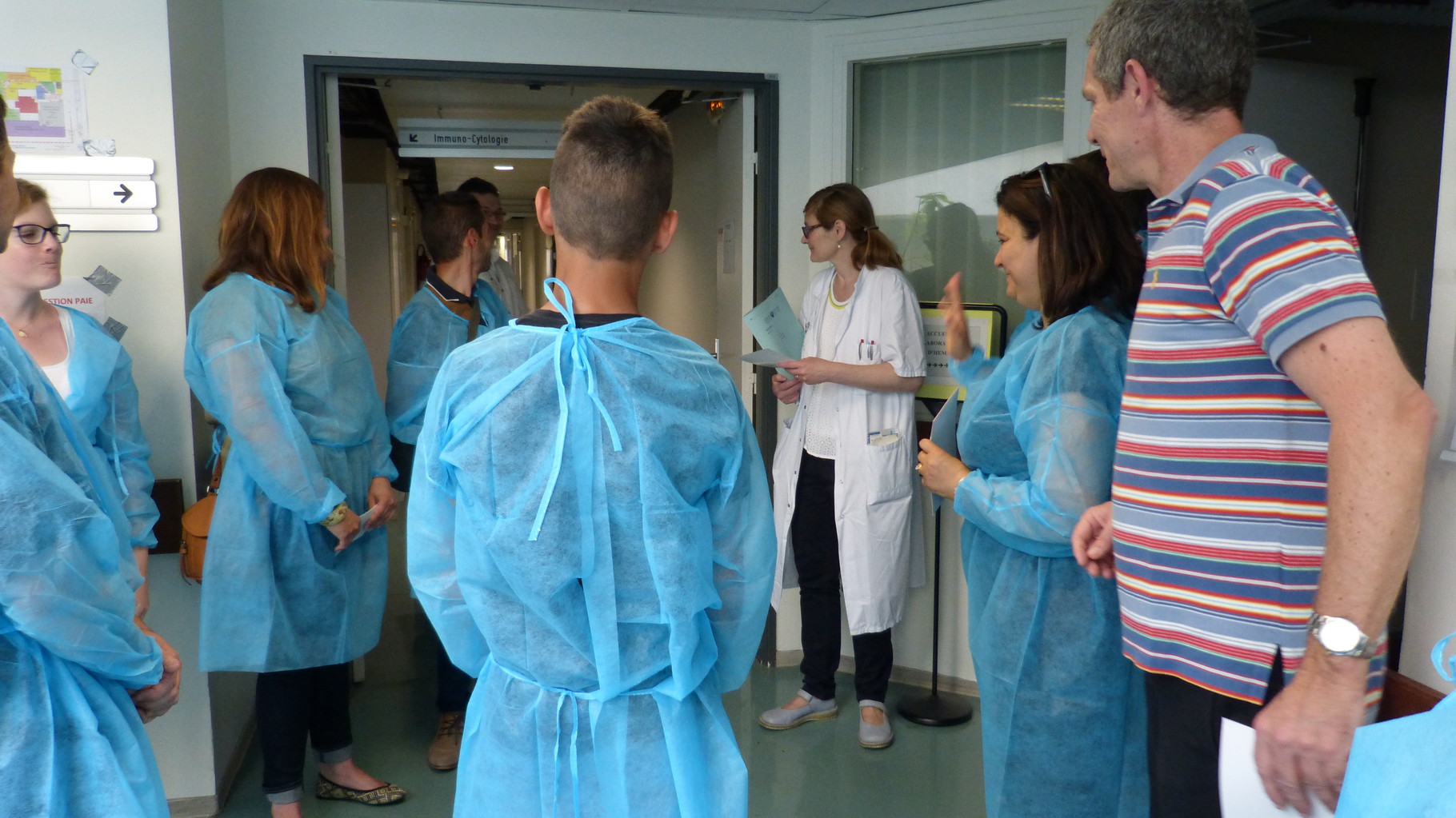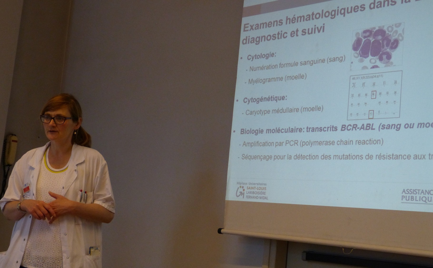Le 1er Juillet 2015, les membres de l'association de patients LMC France découvrent le laboratoire du service d'hématologie de l'hôpital St Louis de Paris en compagnie du Dr Cayuela, Directeur du laboratoire central d'hématologie et du Dr Delphine Réa, hématologue spécialiste de la LMC.