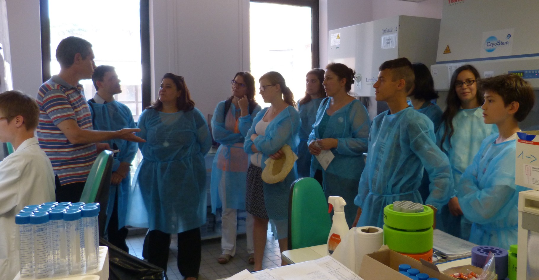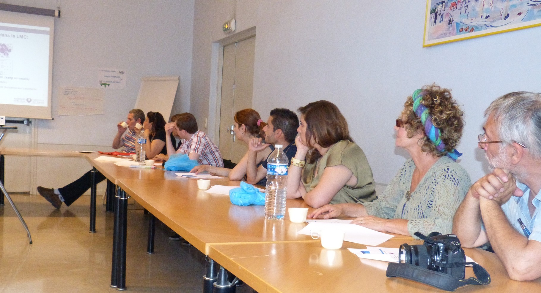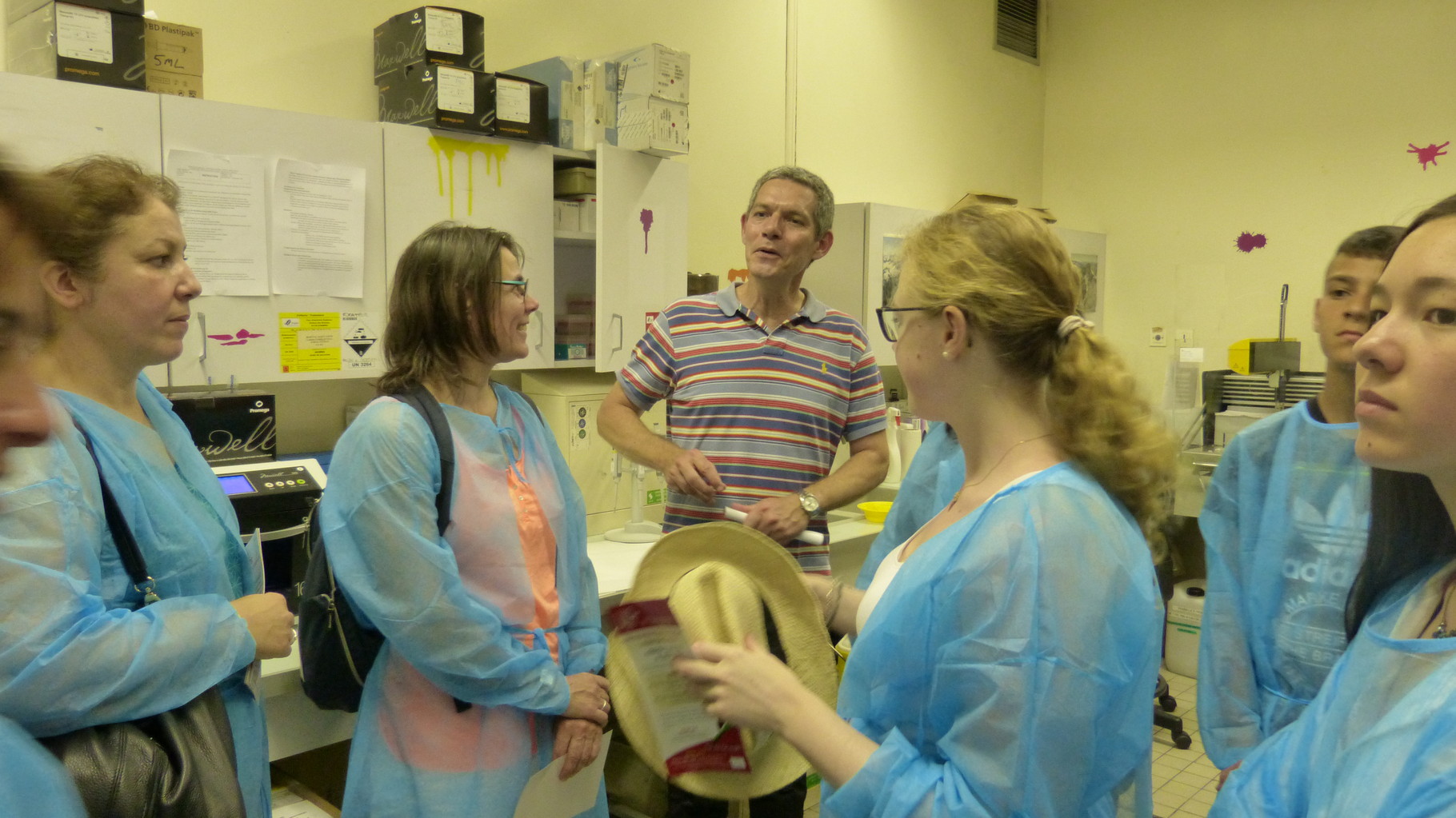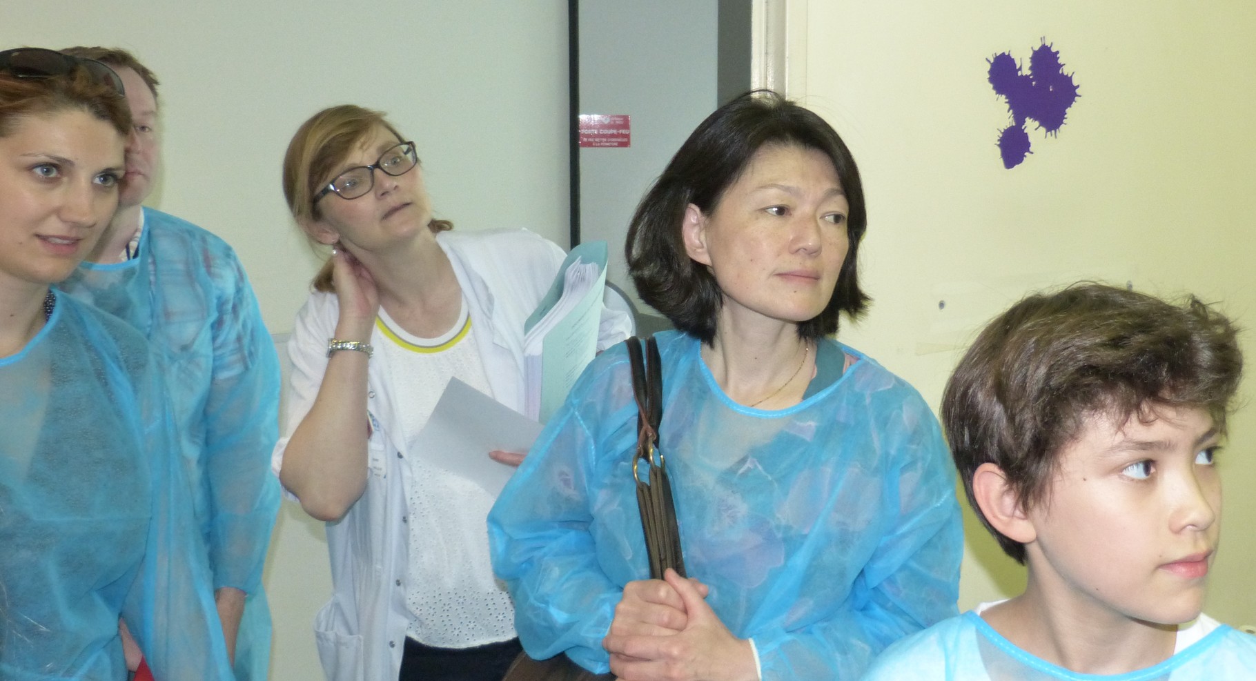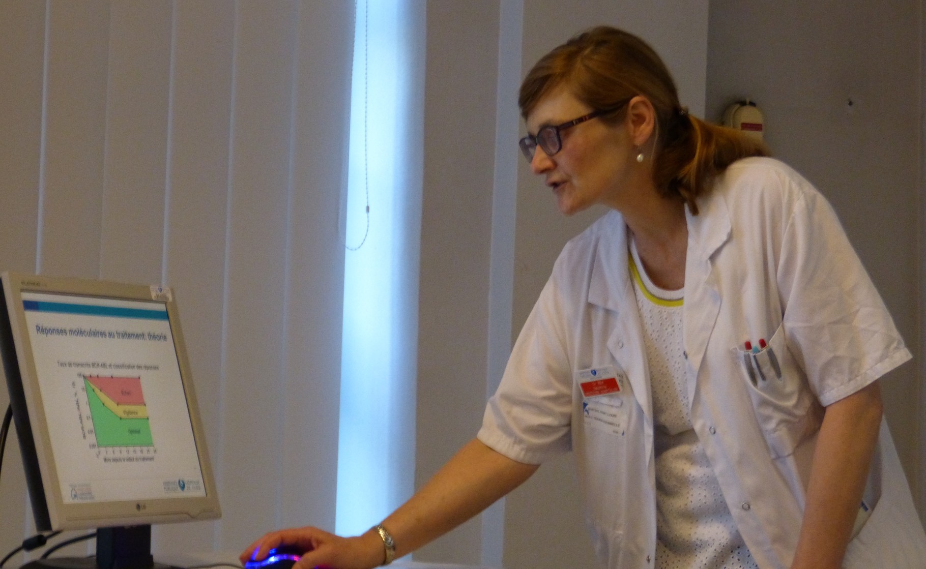Le 1er Juillet 2015, les membres de l'association de patients LMC France découvrent le laboratoire du service d'hématologie de l'hôpital St Louis de Paris en compagnie du Dr Cayuela, Directeur du laboratoire central d'hématologie et du Dr Delphine Réa, hématologue spécialiste de la LMC.